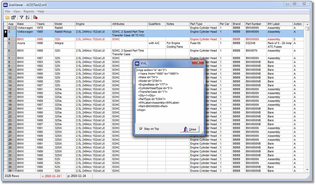 - Generate part usage reports (i.e. buyers guide) from ACES data.