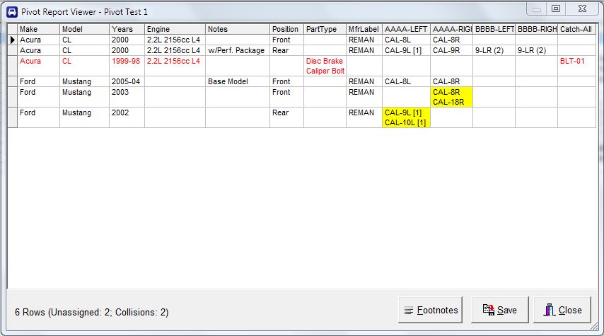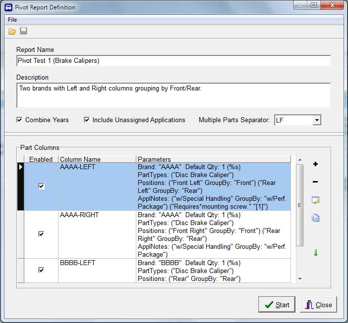 - Generate Pivot Reports combining rows with multiple part columns. (Prof. Ed.)